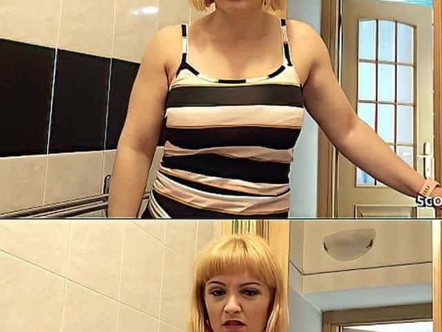 Thick blonde MILF needs stepson's dick for pussy banging games