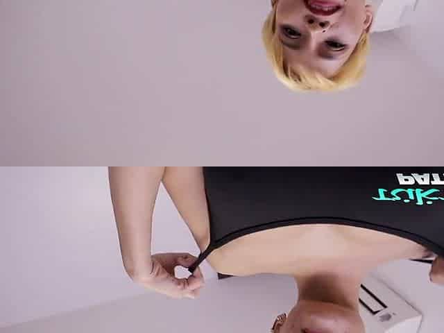 Petite blonde with pigtails Genesis Skye loves to bounce on a huge rod