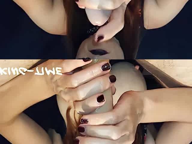Sensual Oiled Edging Handjob From Goth Teen GF Ends in Multiple Cumshots