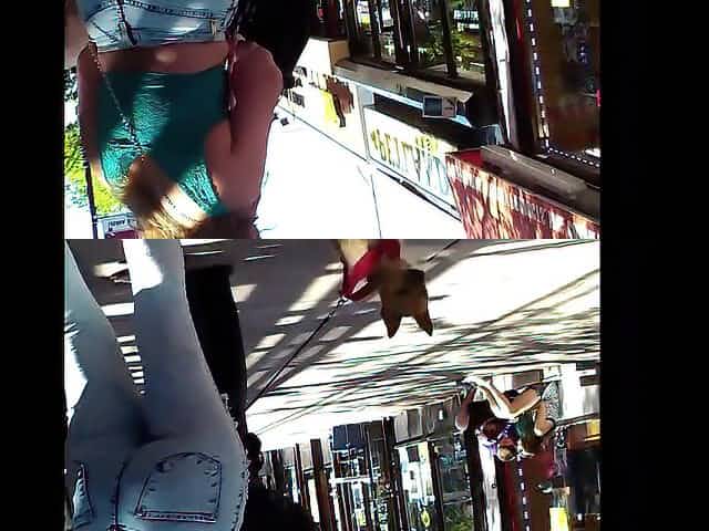 Fat ass white girl in tight jeans at the public bus station