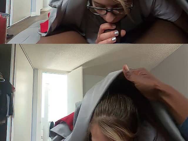 Blonde babe Katerina sucks and rides a large white dick in Gloryhole