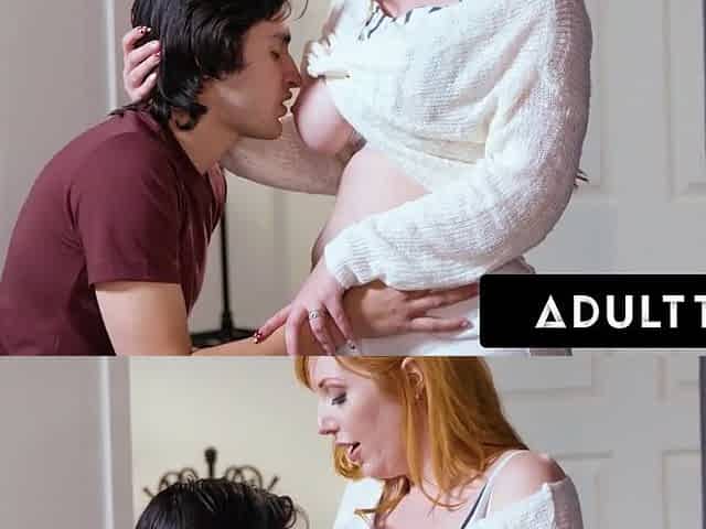 Both stepsons did not know that they were fucking a red-haired perverted stepmother at the same time