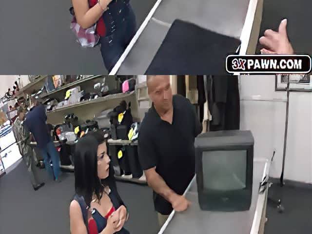 Milf shows tits and sucks a cock inside pawnshops office for cash
