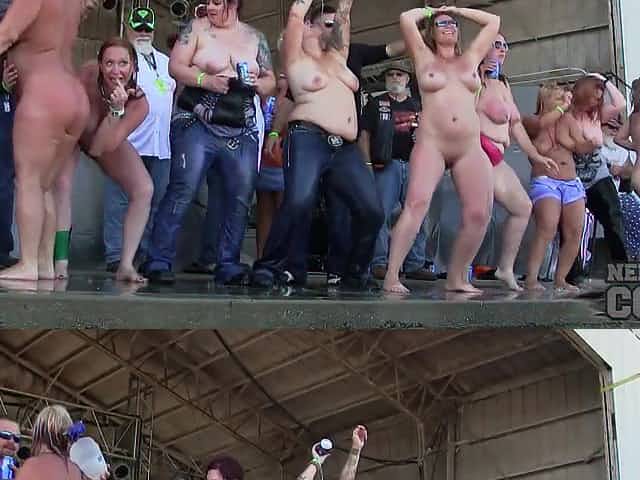 wild midwest biker chicks stripping down in a biker rally contest