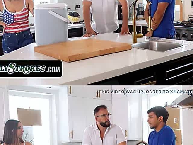 Sexy Slim Buxom Brunette MILF Noticed Her Stepson Wanking & Let Him Fuck Her In Different Poses