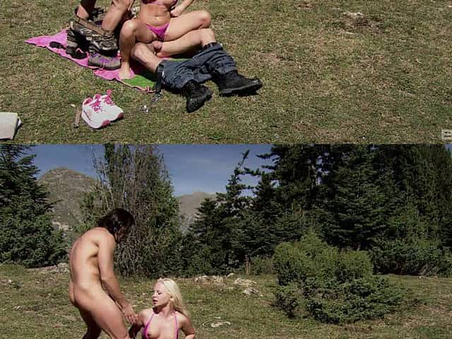 Barbie Banks gets double penetrated and facialed outdoors
