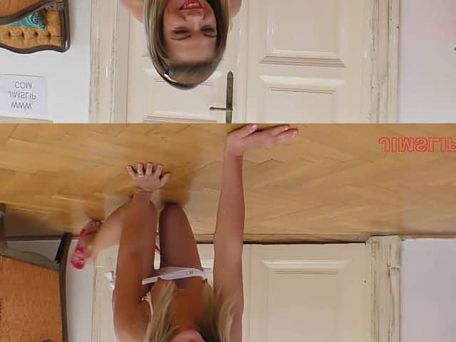 Huge fake tits blonde in bikini bangs pov