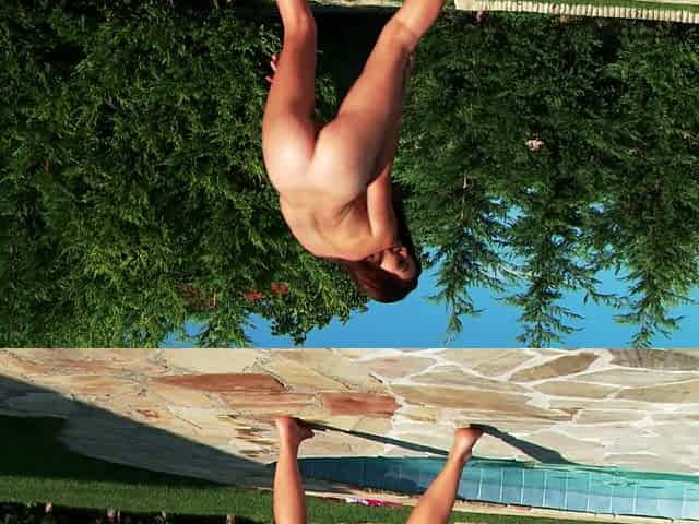 Enjoy my naughty solo pool session as I pleasure myself until I strip naked and explode with ecstasy!