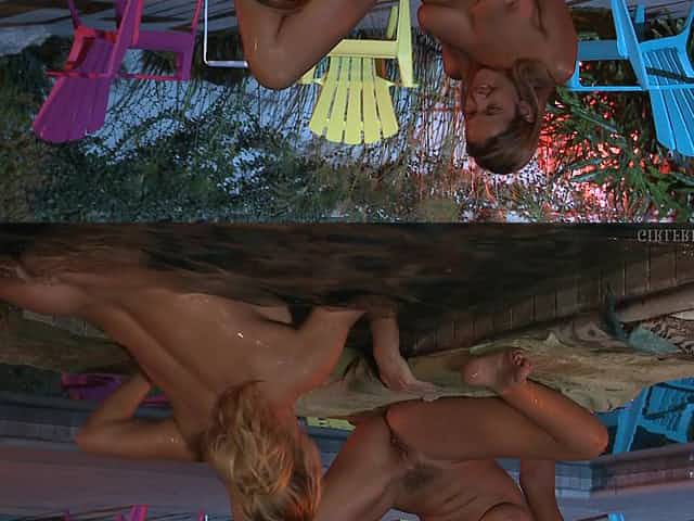 Dark-haired beauties are fucking like lesbians at the poolside