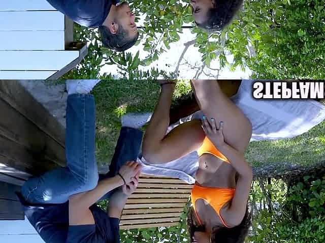 Hot Ebony Babe In Bikini Catches Bro Spying On Her And They Fuck With Bikini Babe