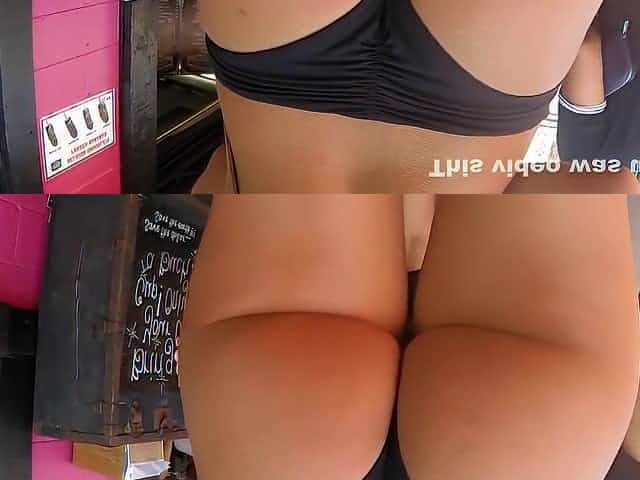 Bikini chick on the street has an incredible booty