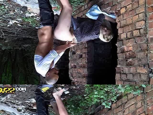 Bimbo in fishnets boned in the fanny in public sex video