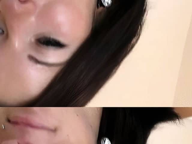 Very cute brunette Asian bimbo sucks and fucks the dick