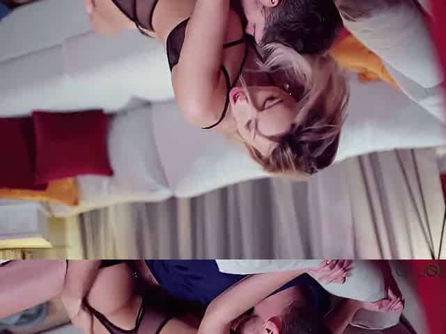 DADDY4K. Beautiful blonde embarks morning sex with handsome daddy. Ria Sun was awakened by her boyfriend and his dad - she had a