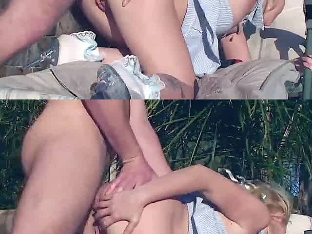 Hard anal sex outdoor for a hot youthful floozy