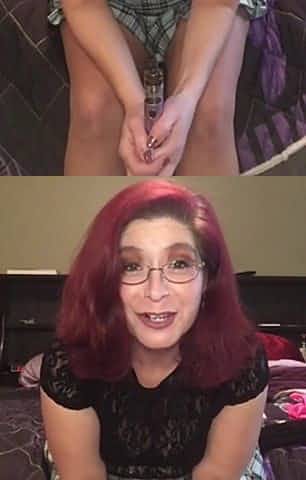Slutty teen bitch fucks her old blond cougar with big dildo