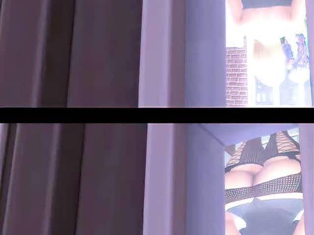 Fishnet clad Hazuki Rui on a black leather couch teasing her nipples and pink slit.