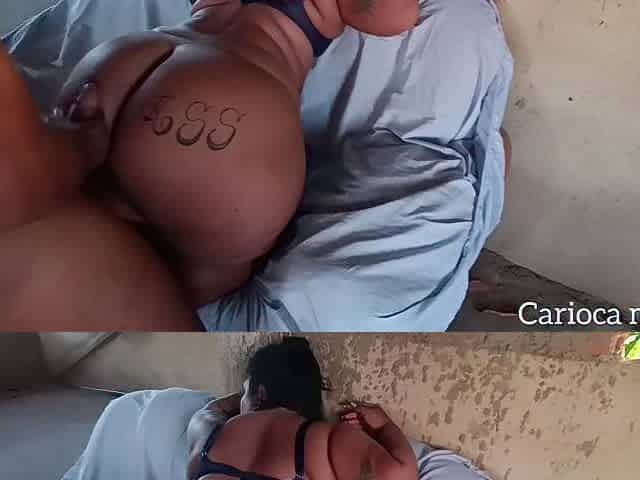 DP Gonzo fat ebony drilled at home with double penetration in threesome