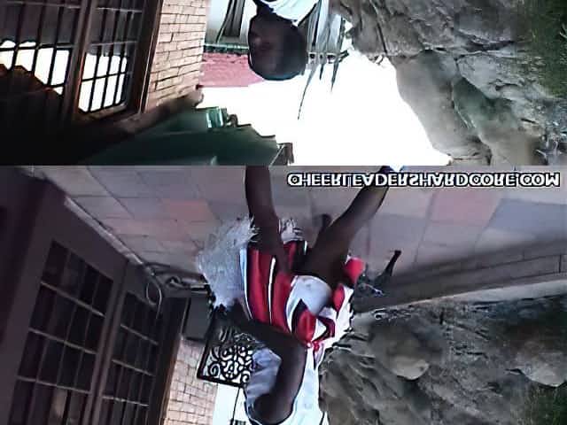 The clip starts with this sexy ebony cheerleader showing