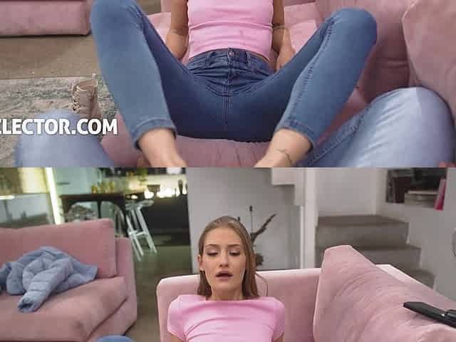 Curious Goddess - smelling foot odor from hot blonde stepmother with big butt opening her anus doing anal