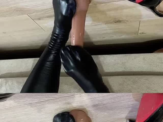 Foot Job With A Dildo From Hot Mistress Lara In Sexy Black Leather Stockings