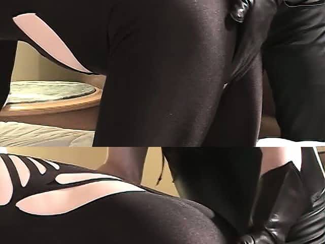 Femdom cumshot, edging handjob, leather gloves