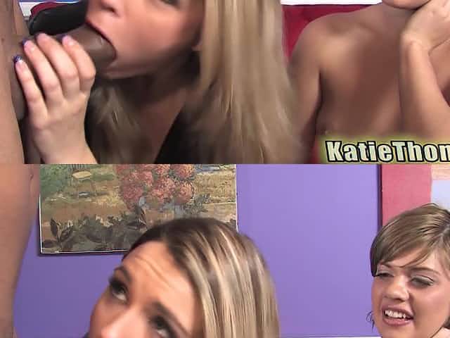 Haileey James and Katie Thomas take turns fucking a big black cock