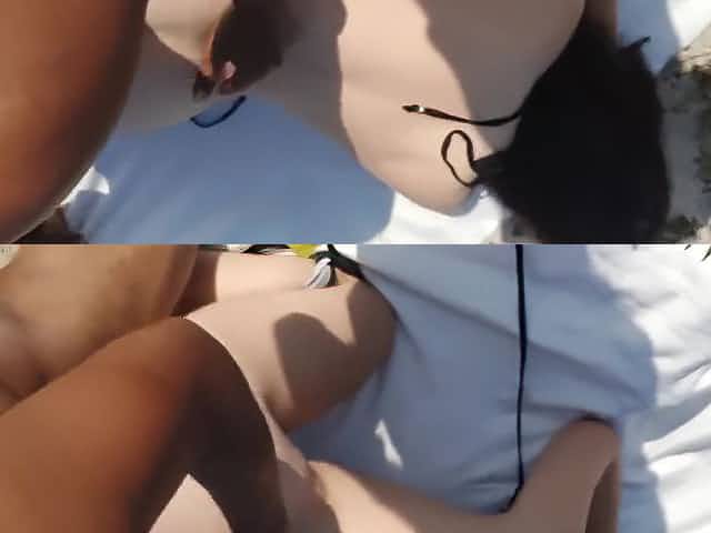 Cuckold wife with big ass fucks on the beach with black cock guy