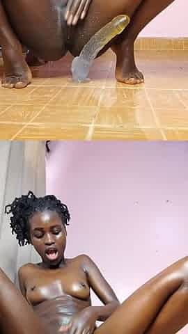 Nigerian Ebony Sweetheart Nicole Kitt uses her sex-toy and buttplug to squirt in her dormroom