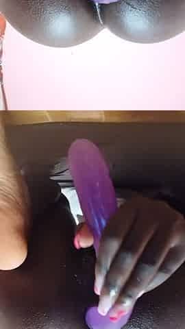Black Girl Masturbates with Sex Toy on Webcam and Squirts