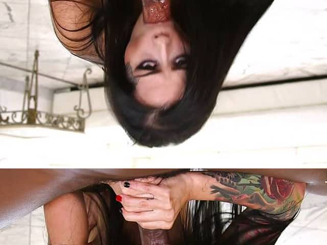 Sexy sleeve tattoo on a hot goth girl sucking big black cock