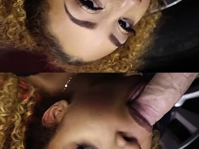 Hot black girl blowing her mans dick