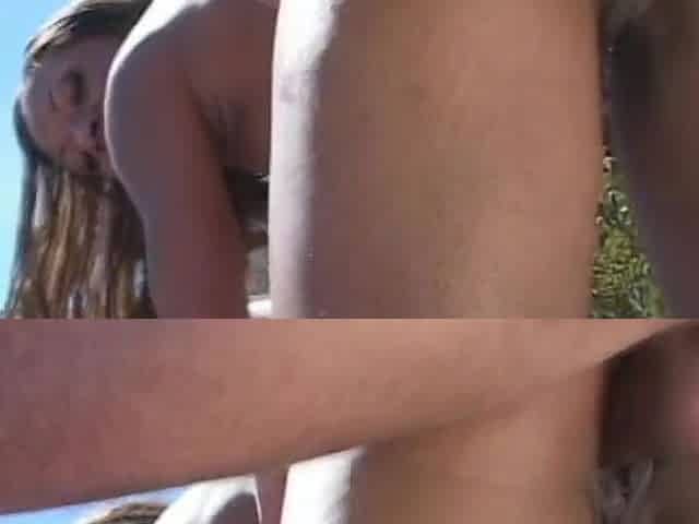 Cute babe sucks stranger's BBC while getting her hairy cunt teased