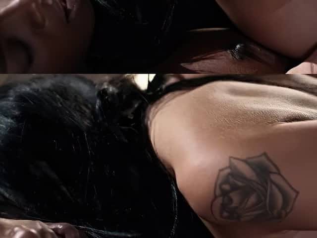Oiled babe gets her pussy pleasured by horny model Erica Black
