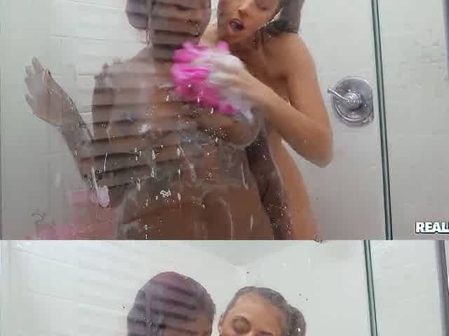 LickNylons Video Sandy and Rosa, While Sandy was taking a shower, her dark-haired lez friend Rosa pleasured herself with sexy bl