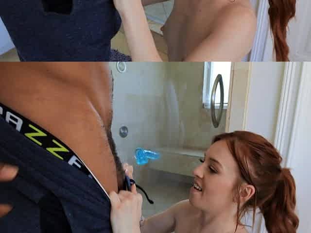 Skinny redhead Madi Collins moans while getting fucked by a black man