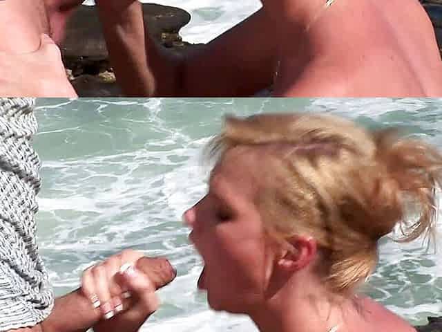 Blonde woman with natural tits loves interracial sex with black men