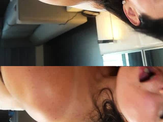Busty brunette sucks and licks big cock in a close up