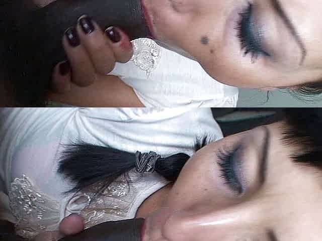 Hot cock sucking black chick jizzed by old white guy after sucking riding cock