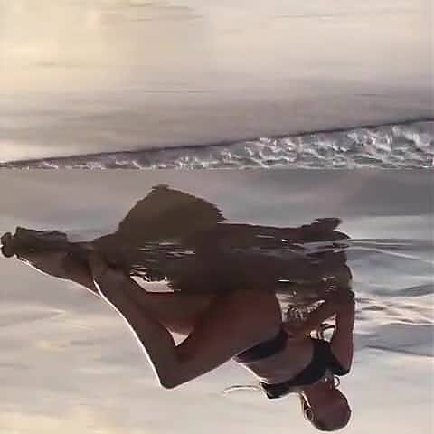 Candice Swanepoel laying on beach in black bikini