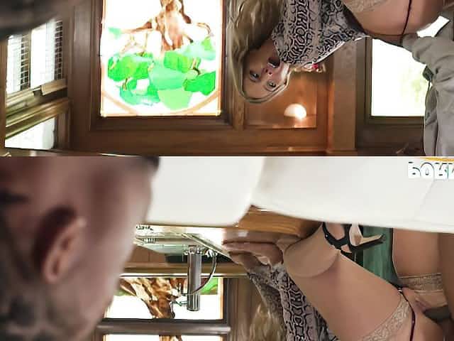 Cute bleached babe Aubrey Sinclair gets fucked in the doggy style pose