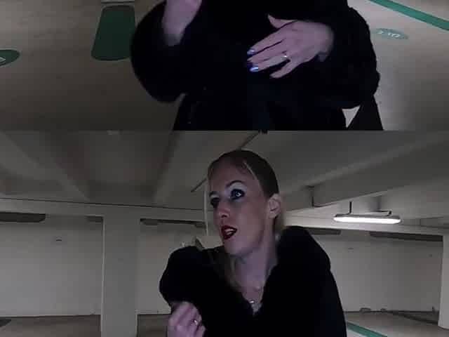 Hot chick in black lingerie showing her pussy to the people