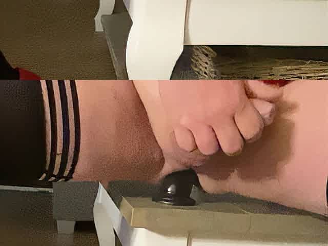 Shemale looks hot in black stockings during masturbation