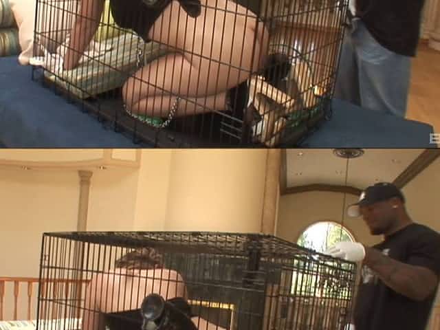 Slave in a cage released so BBC can fuck her white pussy