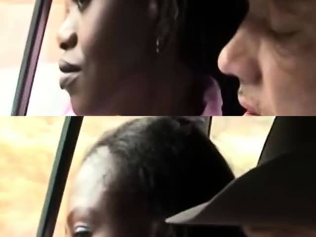Ebony slave sucking black cock in car blowjob