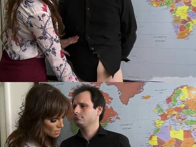 Posh Latina in lingeroe playing with office slave