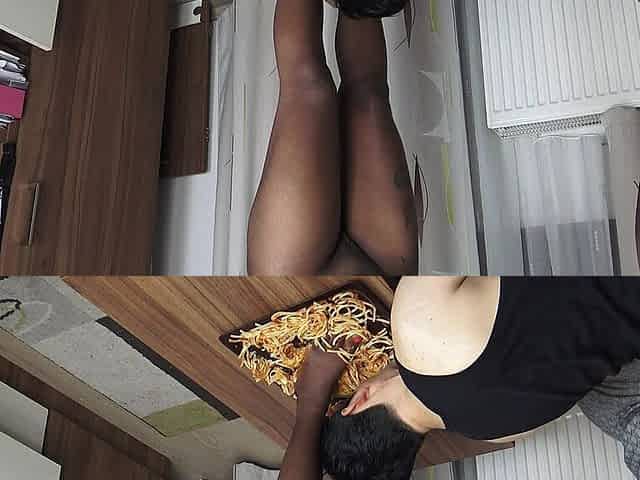 Italian slave get his food: spaghetti and lasagne of black ebony feet!