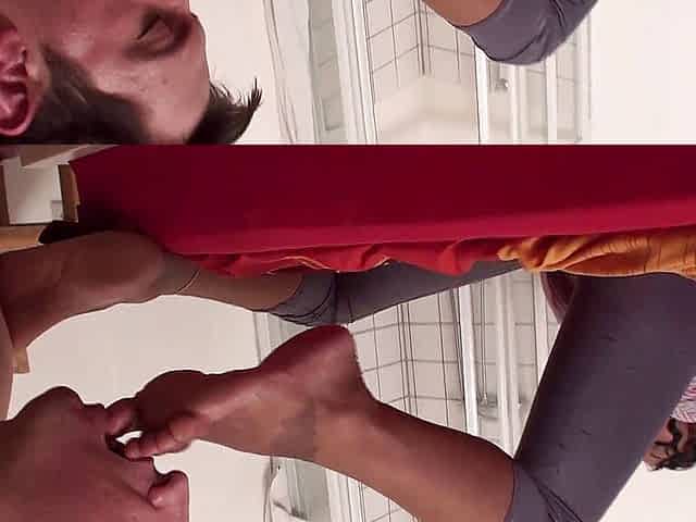 Foot worship and facesitting in black nylons