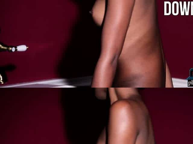 Ebony teen model exposes luscious body