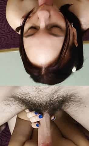 "A sexy young brunette gets her pussy eaten by a black dude"